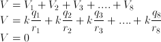 Tentukan besar potensial listrik di titik P yang merupakan titik berat kubus !